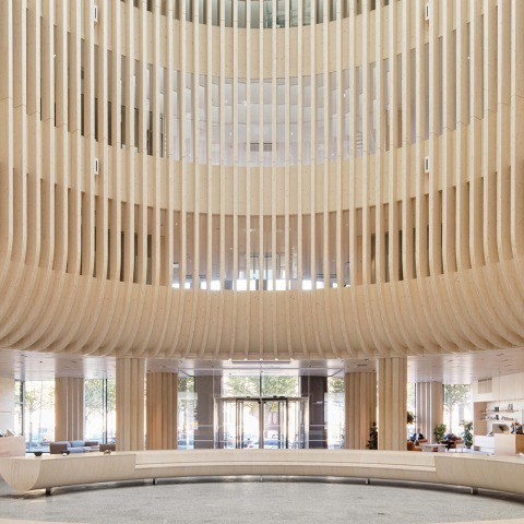 The project has been guided by the objective of minimizing climate impacts over a long lifecycle and making the best use of renewable resources and materials. The building’s above-ground structures utilize standard, industrial, prefabricated Stora Enso massive wood products customized for pioneering structural and architectural solutions.