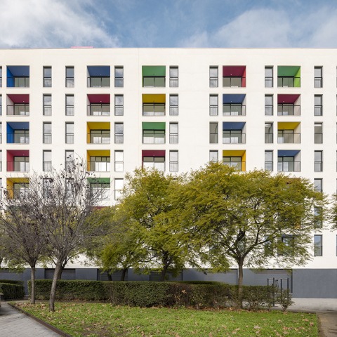 SB Building. 110 affordable rental apartments, complementary spaces, and commercial premises by EMBA. Photography by Oriol Gómez.