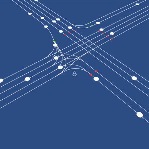 Using Processing in combination with MaxMSP, a traffic simulation is used to power the movement of vehicles through different sections of road networks in London. From a street level perspective the motions of traffic combine the sounds to create soundscapes that are unique to the place and time. The roadside becomes a new context for sound – the city is the score.