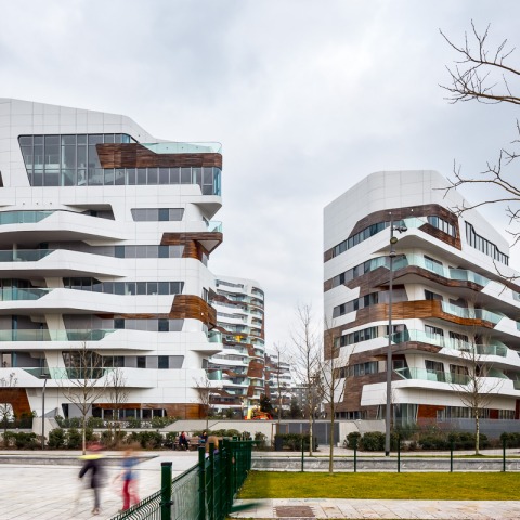 The skyline of Zaha Hadid’s CityLifeMilano housing complex is defined and characterized by a sinuous fluid line. Residences are comprised of seven curved buildings of varying heights, from 5 to 13 floors. The distinctive architectural elements include a serpentine movement of the curved balconies and the profile of the roofs, which provide a soft and elegant shape for all of the top-floor penthouses, complete with extensive covered terraces. Construction of the residential complex began in august 2009, with delivery of the first apartments scheduled for 2013.