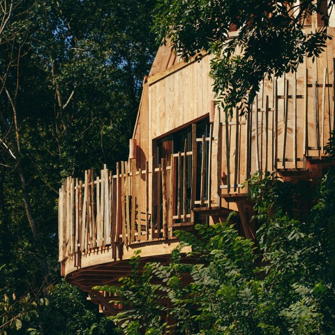 The four cabins on the Grands Lacs estate are the first in a series of collaborations between the studio and Coucoo Cabanes. Here, architecture and nature live in symbiosis. Guests are drawn to the property in order to experience a sense of humility and tranquillity in the presence of nature’s majesty.
