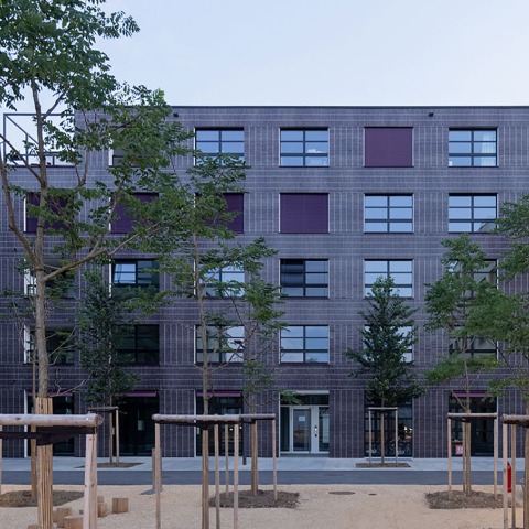Angular, shimmering brick facades in green, yellow, aubergine, and red gives a strong identity to HHF Architects’ winning entry for part of the new master plan Parc du Simplon in Renens, Lausanne. The ruggedness and simplicity of the bricks are evocative of the site’s industrial history, while the glazed surfaces contribute to the lively atmosphere of the area.