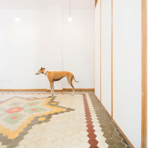 The renovation of this house, located in a building from the 30s of the twentieth century, is divided into two basic estrategies: the recovery of the original hexagonal hydraulic mosaic fl ooring, rich in geometric drawings and colors; and the arrangement of a two-bedroom house where light and economy of resources were the determinant factors for its development.