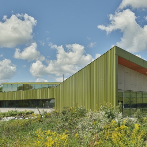 Co-located with the Reels program, the administration remains connected to the activity of the campus and provides a supportive and nurturing environment for first-year middle-school students. Inside, classrooms and wet labs are divided by bars of service spaces that include storage, restrooms, and a mechanical area. A daylit corridor connects the various labs and is lined with student learning and study spaces, creating a dynamic and collaborative learning environment.