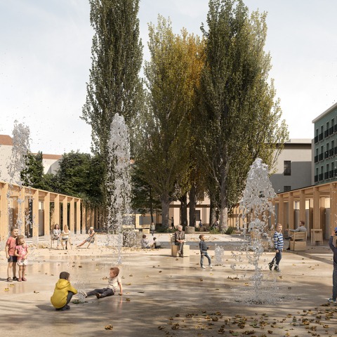 Rendering. Finalist proposal for the Plaza de Santa Ana by Iraburu Estudio.