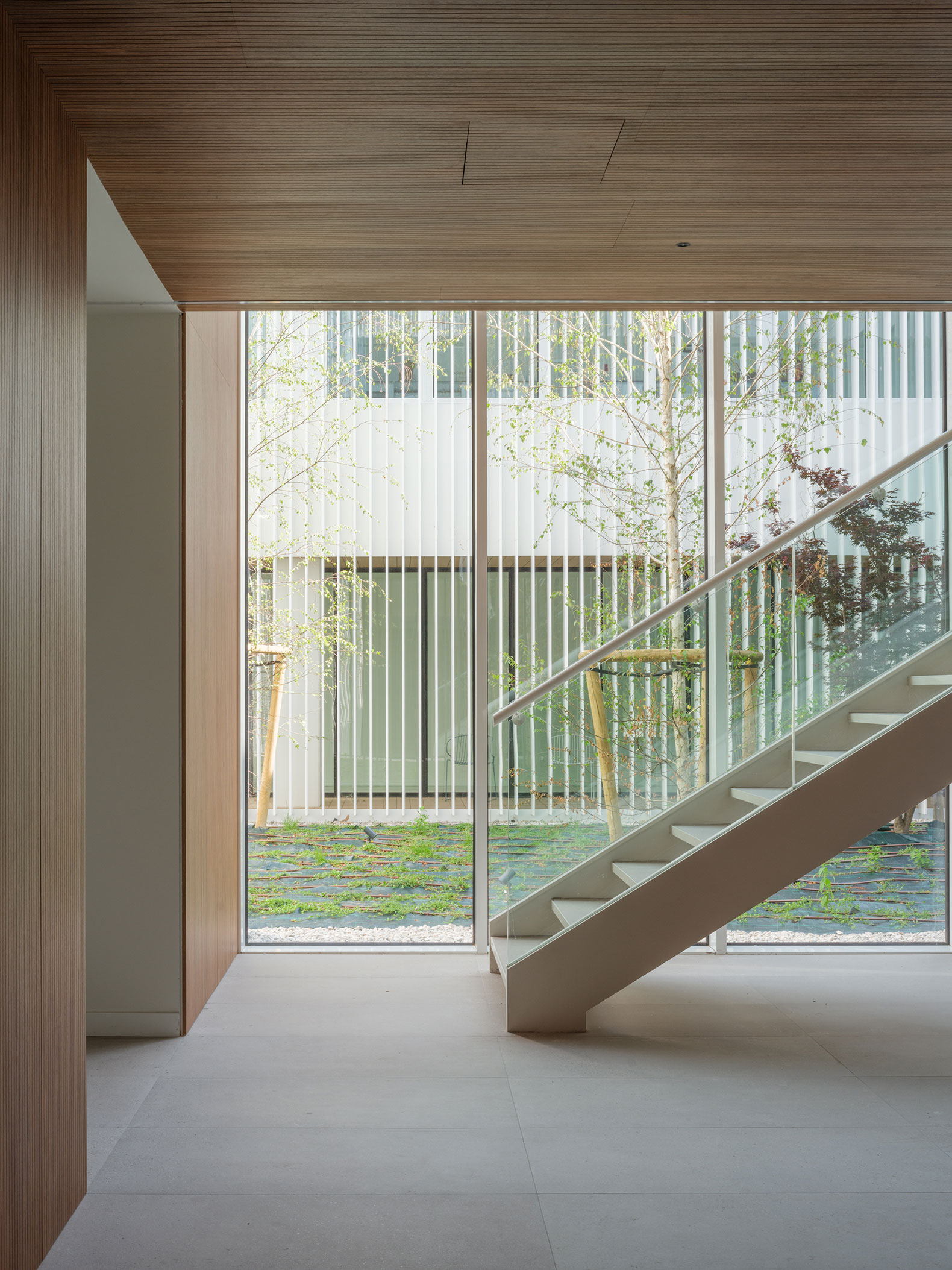 The rectangular landscaped courtyard becomes the heart of the building. All interior spaces face this central void, which functions as a visual connector bringing natural light, ventilation, and a sense of openness and well being.
