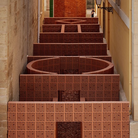 The project is located in the passage of the old Tobacco Factory of La Rioja, an urban space of narrow and elongated dimensions, filled by a monumental red brick chimney. The project restores the site to its status as a built space by consolidating the facades and giving the tobacco factory as a whole its original unity. The interior is articulated through the concatenation of a series of square rooms of 3.6x3.6m that form a spatial procession of corridors and rooms of domestic character, thus reconstructing the emptiness of the passage.