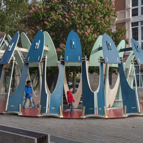 After the festival, this vertical accent will be dismantled into a number of heavy duty stools that people who will happen to be present during the finissage will receive and take home.