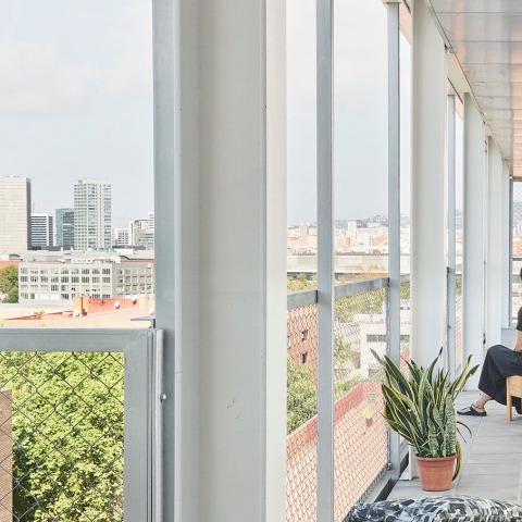The dwellings contained in the building have different flexible typologies depending on the number of modules that have been used, and all of them can be connected or closed off. All the dwellings are cross-ventilated through the interior courtyards, which also allow natural light to enter through the interior of the volume.