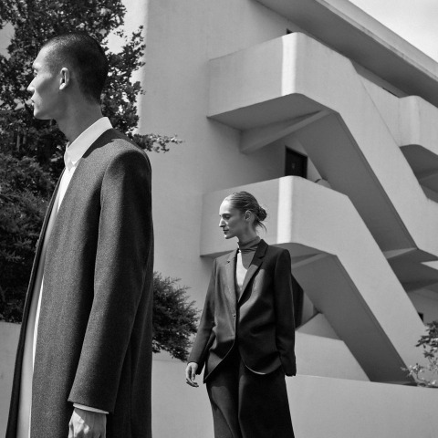 The form follows the function, through a closet that reflects the Bauhaus design principles and the core features of COS: modernity, functionality and design. Focusing on the geometric shapes by which the movement was recognized, the collection is also presented in a monochromatic color palette reminiscent of the school building itself, alternating grays and whites.
