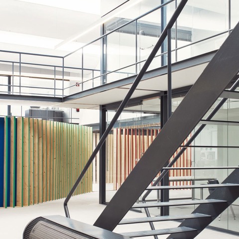Exactly, these wooden links, simultaneously reflect and adapt itself according to the passages and elements set across the open space.