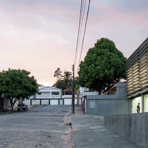 The program is distributed in two levels: The upper floor accommodates the administrative functions - divided in two sections connected by a metallic walkway while the ground floor receives the public functions with a multipurpose room able to work as a lecture space, seating up to 150 people. The main hall and other areas are open and unfenced – totally permeable – and all connected and delimited by its double height internal patio space.