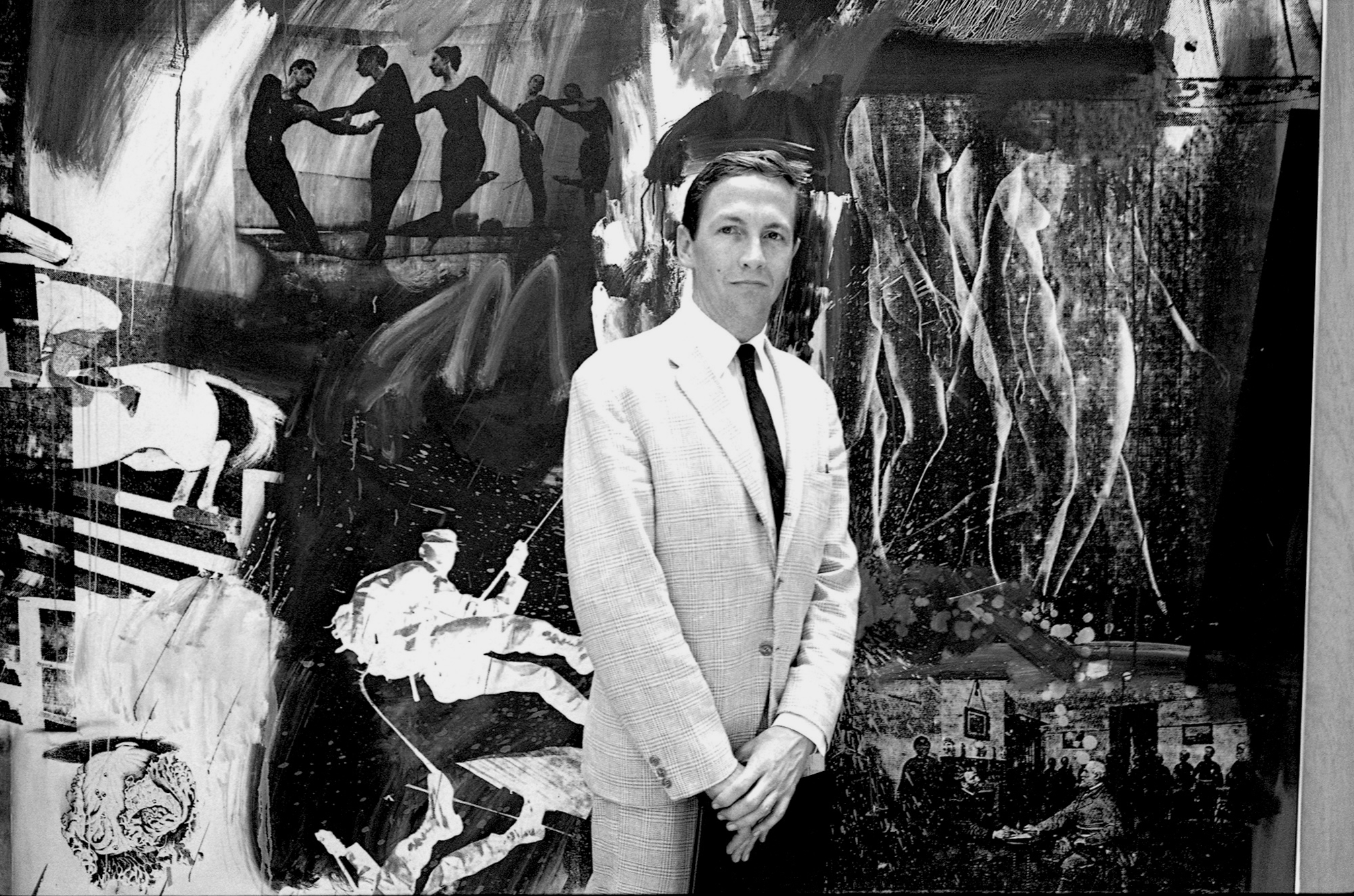 The exhibition, located in room 48 of the permanent collection, proposes a reconstruction of his working method, which began with the selection of photographs. Numerous examples of these images are displayed in a glass case, some from his personal archive and, in most cases, from American magazines and newspapers such as the New York Daily News and Life Magazine, which served as the starting material for the canvas.