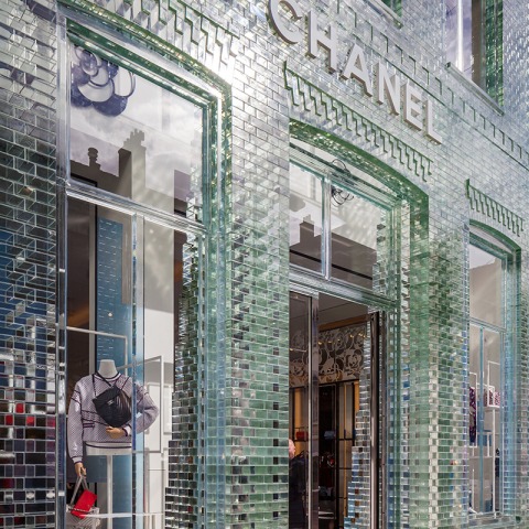 MVRDV wanted to make a representation of the original buildings and found a solution through an extensive use of glass. The near full-glass façade mimics the original design, down to the layering of the bricks and the details of the window frames, but is stretched vertically to comply with updated zoning laws and to allow for an increase in interior space. Glass bricks stretch up the façade of Crystal Houses, eventually dissolving into a traditional terracotta brick façade for the apartments (as stipulated in the City’s aesthetics rules), which appears to be floating above the shop floor.