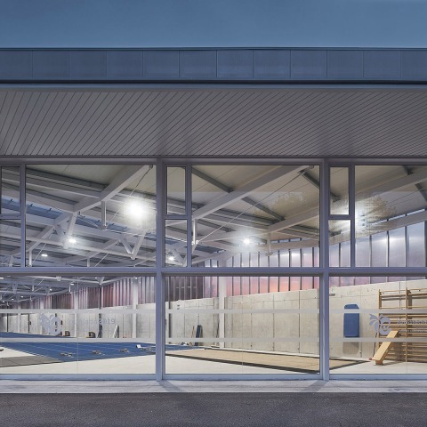 The building houses indoor athletic activities such as 100m race or long jump modalities, and is used mostly to develop specific trainings for high performance athletes and to supply a heated space to warm up and reduce injuries.