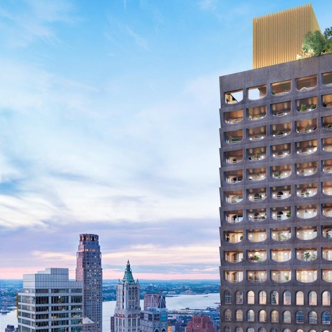 Featuring a façade of hand-cast concrete with bronze detailing, his design makes nods to the past and acknowledges the neighborhood’s history of craftsmanship. "The design for 130 William acknowledges the tower’s location on one of the city’s earliest streets. Understanding that rich history, I was inspired to craft a building that turns away from the commercial feel of glass and that instead celebrates New York’s heritage of masonry architecture with a distinctive presence in Manhattan’s skyline" the architect stated in a press release.