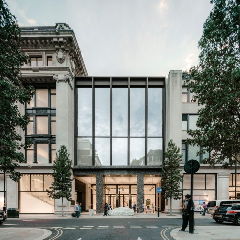 Externally, the new building unites the historic buildings on either side with a grand eastern entrance to the department store and tall loggia in the manner of the original entrance on Oxford Street. Sitting several meters forward and more closely in line with the existing Duke Street buildings than the previous infill, this new element completes the street façade but inevitably encloses a section of the listed classic façade into the new building. To avoid obscuring this feature, an open porch at street level and a triple-height, glazed café space on the first floor allow the floorplates to coincide and continue the dominant cornices and lintels of the existing buildings.