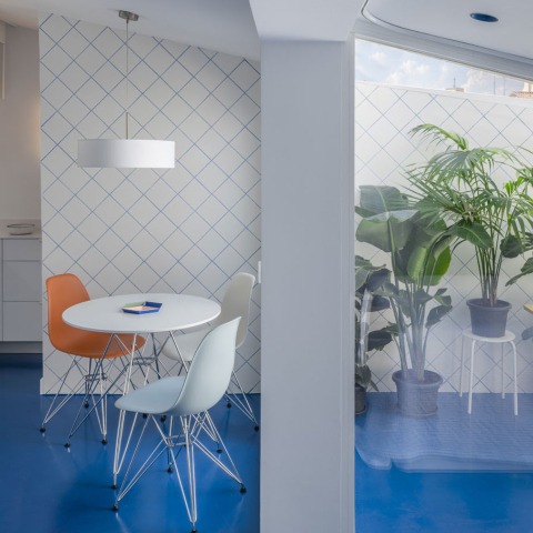 Beach House is a vacation house in the center of a city without sea for a person who lives alone, a space that is especially enjoyable in solitude, something that, as in the song about time and silence by the Cape Verdean singer Cesárea Évora, is a new beginning.
