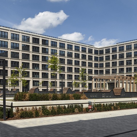 The TechnoCampus Berlin was created as a balanced ensemble of historic buildings and new constructions that pay tribute to the tradition of the location in their tranquillity, self-evidence, in their quality of craftsmanship, and generous sequences of rooms. The existing complex was juxtaposed with a similarly closed, urban figure: an angular building with seven stories (BT1) and another including a three-story extension (BT2). This created two courtyards with generous green spaces that further emphasize the campus character of the project.