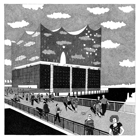 Today we bring you these illustrations of the Hamburg Philharmonic designed by Herzog & de Meuron and drawn by Diane Berg.