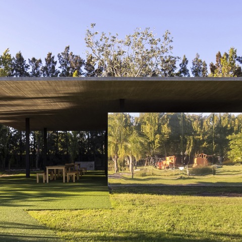 A compact building located in the heart of a small forest around a lake was designed, seeking minimal intervention in the place. A mirrored volume emerges from the vegetation to blend into the trees. The construction is present but seeks to disappear reflecting the landscape around it and replicating the year's seasons and the passage of time.