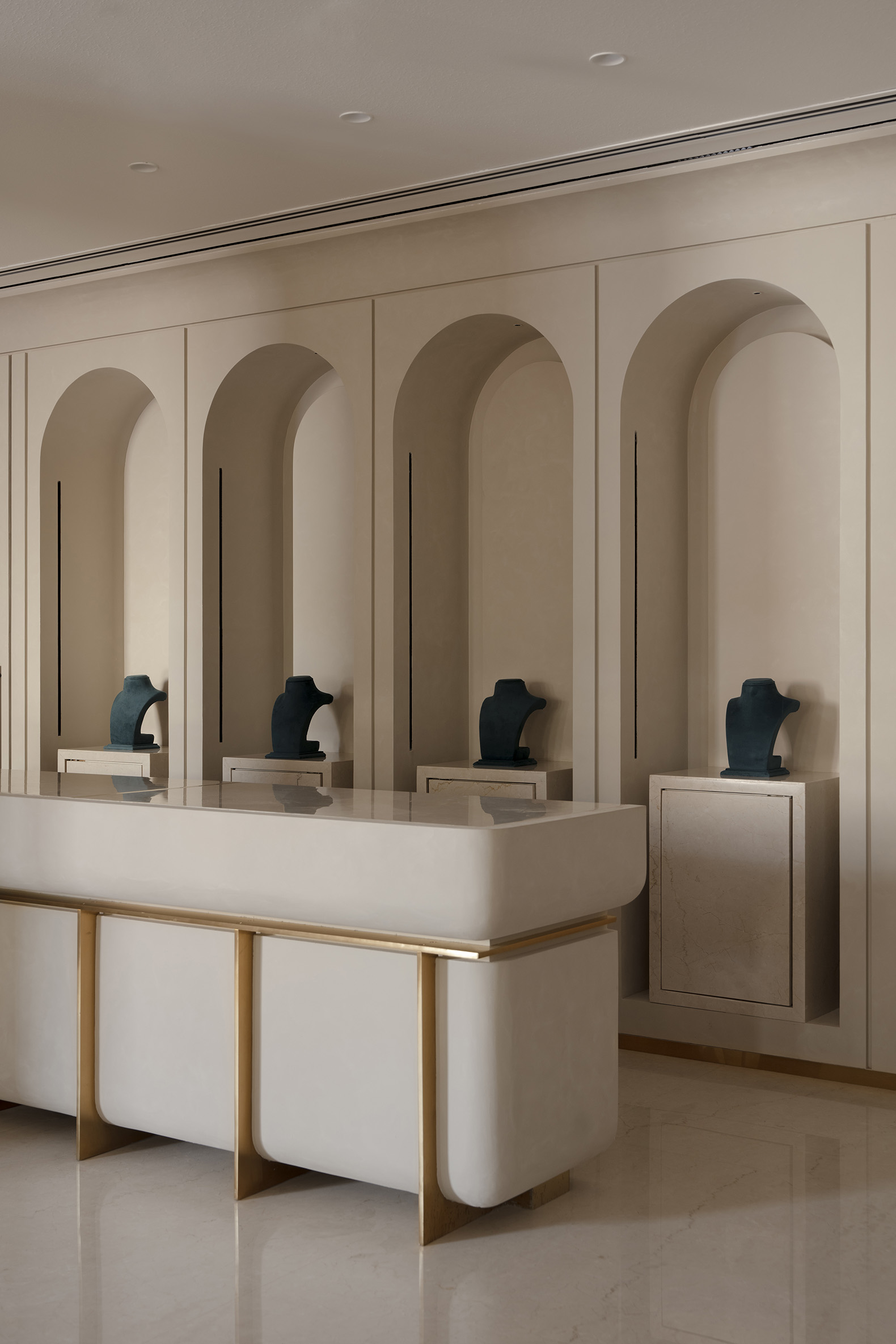 Inside, the store, designed by Studio Urban Form + Objects, unfolds a sequence of choreographed spaces. The journey through the various display areas flows smoothly, thanks to balanced transitions that simultaneously regulate visibility, privacy, and security. The vaults and high-security areas are located at the rear, while the public access areas occupy the front.
