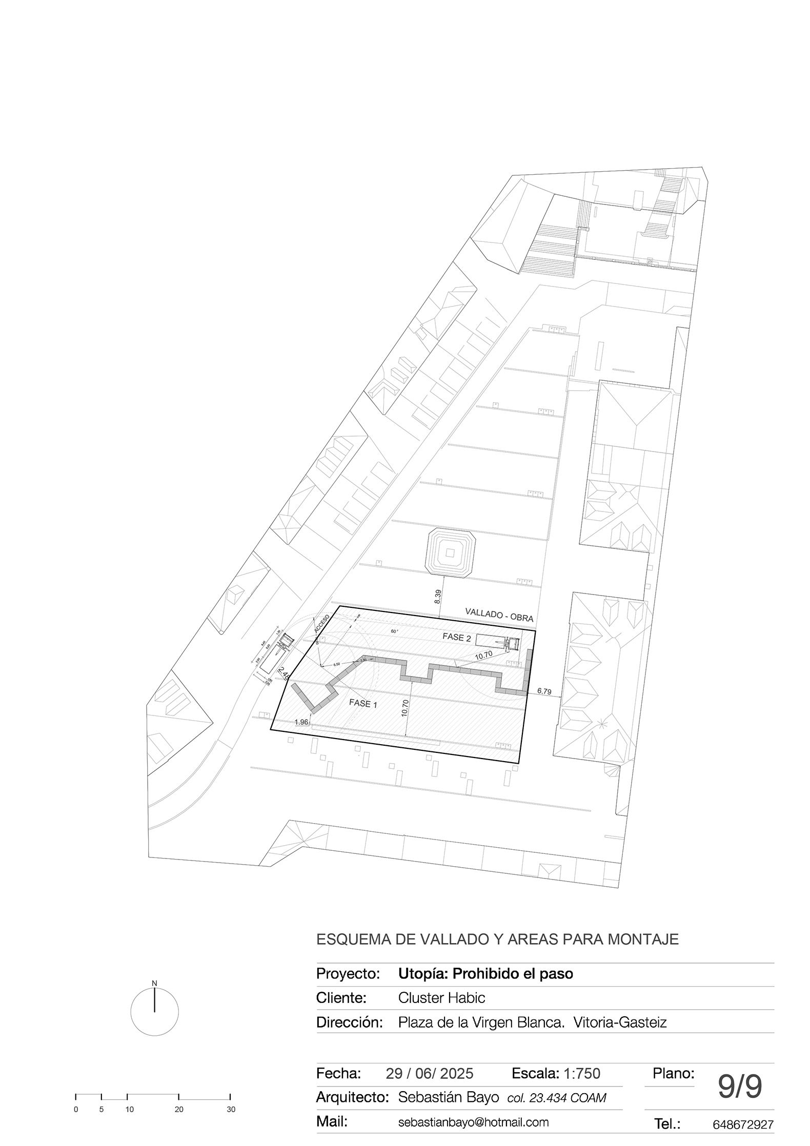 For the first time, the capital of Álava will feature an installation in a public space within the Mugak Biennial. The selected proposal is "Utopia: No Entry," by architect and artist Sebastián Bayo, which will be located in the central Plaza de la Virgen Blanca. In fact, it will divide the plaza in two: the proposal consists of a wall that will provoke reflection on the barriers that divide the world.