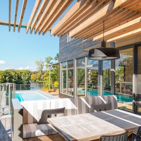 Interior designer Martine Brisson designed a spacious, balanced patio for two people with a deep passion for contemporary design. The project won the award for best home terrace at Quebec’s Grands Prix du Design 2015.