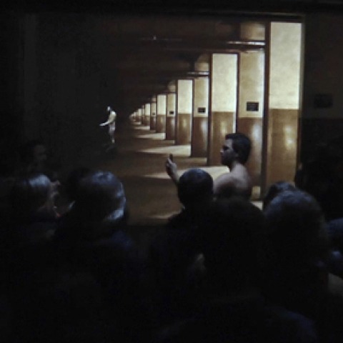 Furthermore there is another dialogue between reality and fiction, when the naked man appears in reality, amongst the audience members whom he is recording on his mobile phone. A little later, a telephone rings, the actor answers it and then disappears again in the fictitious layer, where he multiplies himself and finally all his clones answer a phone call as well.