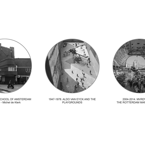 Chapter 1: Public Space – Between Het Schip and Rotterdam Market Hall is an analysis about the evolution of the public space and the relation with housing. This process started with the School of Amsterdam and Michel De Klerk at the beginning of the last century, it continued with the Playgrounds of Aldo Van Eyck and it is finishing with the hybrid architecture of MVRDV. During this time, it appeared an evolution about the social approach of the proposals. Whereas the architecture of the beginning of the XX Century attempts to improve the social status of their citizens (the working class), Dutch contemporary projects are focused dealing with regulation and client requests. However, there is an aesthetic idea that remains during the whole century. All the architects exposed below rejected the classic functionalism of the International Style and the projects were based in the expressionism of the function, using different architectural languages.