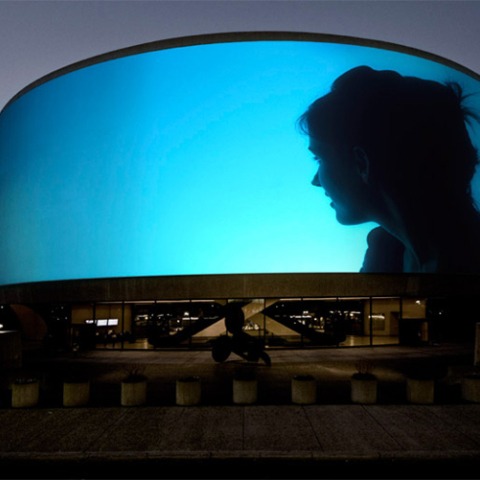 For nearly eight weeks this spring, the artist Doug Aitken (American, b. Redondo Beach, Calif., 1968; lives and works in Los Angeles and New York) will illuminate the façade of the Hirshhorn’s iconic cylindrical building by completely covering it with moving images, accompanying them with an original soundscape. Between March 22 and May 13, from sundown to midnight, artist Doug Aitken’s "SONG 1" installation will use 11 high-definition video projectors to seamlessly blend moving images around the entire building.