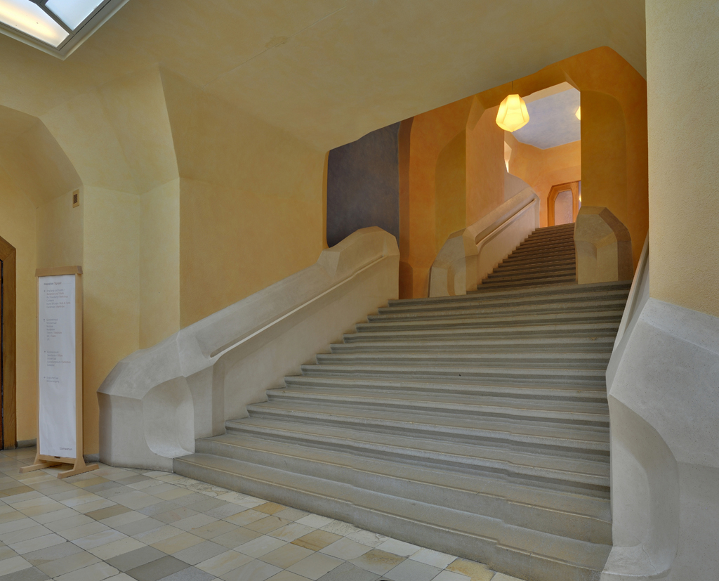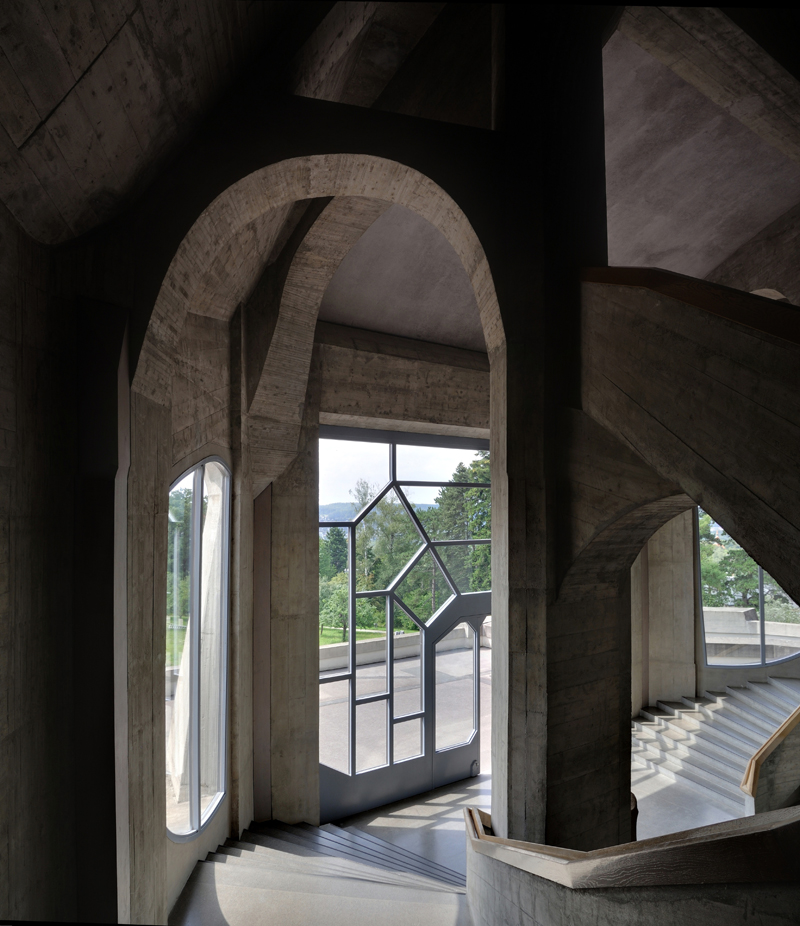 The use of concrete to get expressive organic shapes was an innovation in the epoch. Here the concepts of the mineral and the vegetal are joined to create all the odd forms that vitalizes the building. The fluid surfaces and the dynamism of the elements should be understood under Steiner’s and his foundation point of view, in which all the phenomena were changing from a state to another and that all the visible and tangible things were expressions of internal process.
