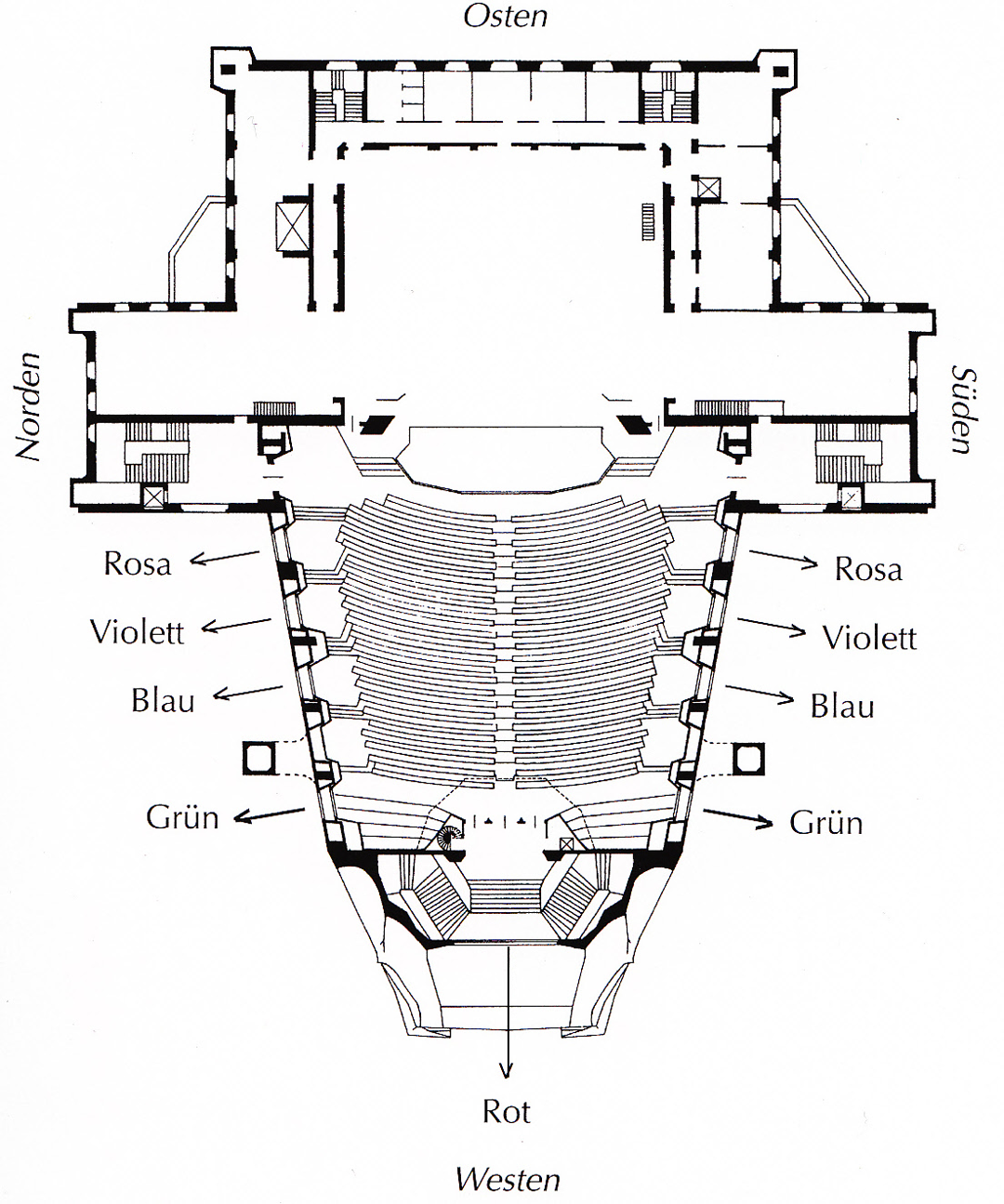 The building includes two performance halls with a capacity of 1500 people both together; it has spaces for exhibition and reading, one library, one book shop and administrative spaces for the Anthroposophy Society. The adjacent buildings have the education and research facilities.