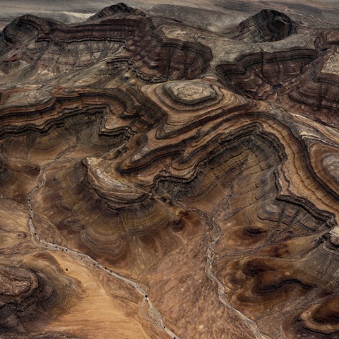 The images by Edward Burtynsky present environments shaped by various resource extraction processes, from the artisanal sapphire mines of Madagascar and the salt flats of Senegal to the "residual landscapes" of mechanized industrial extraction. Along with industrialized landscapes, the artist also offers images of the pristine natural environment as a reminder of its fragility and finiteness, such as the rich sculptural topography of the Tsaus Mountains in Namibia; or the unaltered ecosystem of Lake Logipi, in the Rift Valley (Kenya).