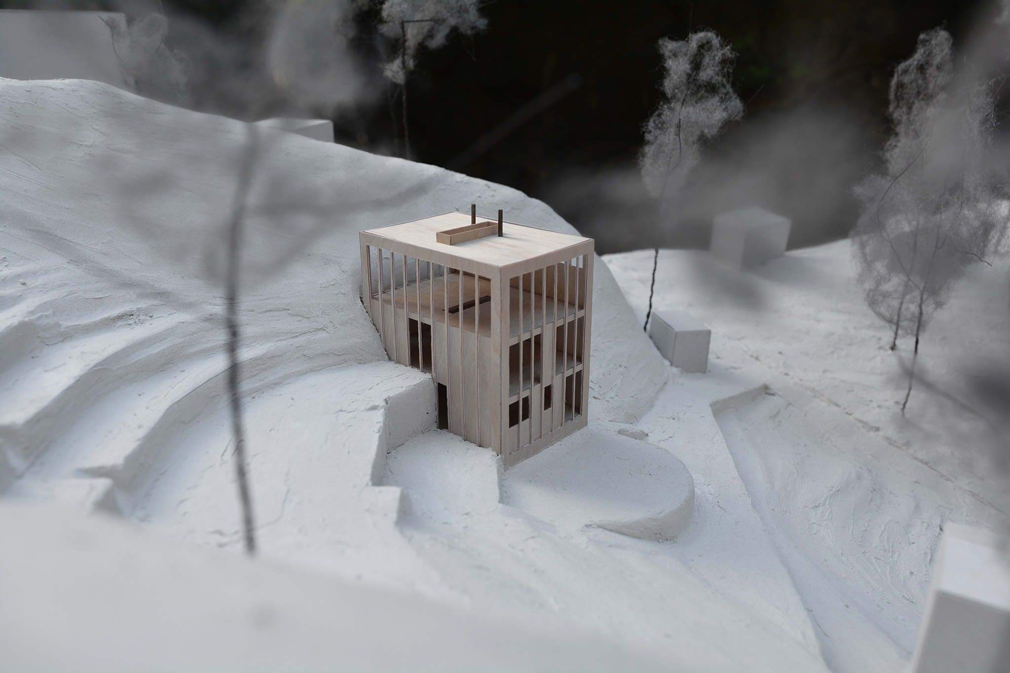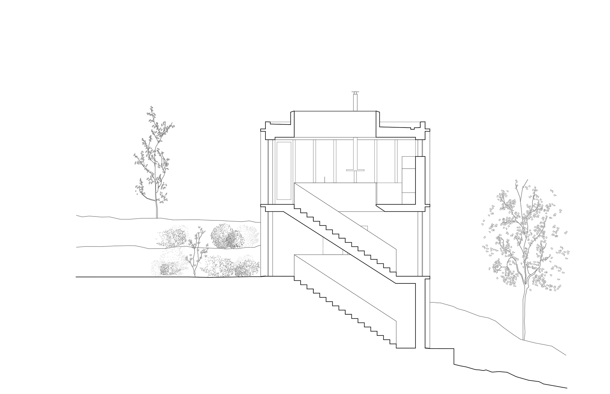 The new house is a strict three-story structure with a compact plan, that leaves a minimal footprint. By partially embedding the building into the existing steep cliffside, the necessary height for an additional story was achieved while simultaneously reducing visual impact. As such, the building incorporates the existing terraces with minimal further changes. The strict division of the timber into horizontal and vertical elements, opposes the terrain and lends the relation between house and site a strong character.