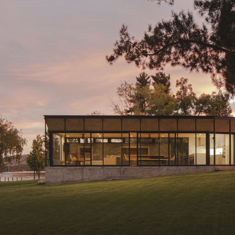 The project is defined as a minimal dwelling located on the shore of Lake Rapel, in the sixth region of Chile. This building is located towards the shore and is oriented, on its main façade, towards the canal that opens to the center of the lake. This location ensures the greatest possible distance between the north façade and the canal itself, leaving a park of pine trees free, which is the area where the garden is projected.