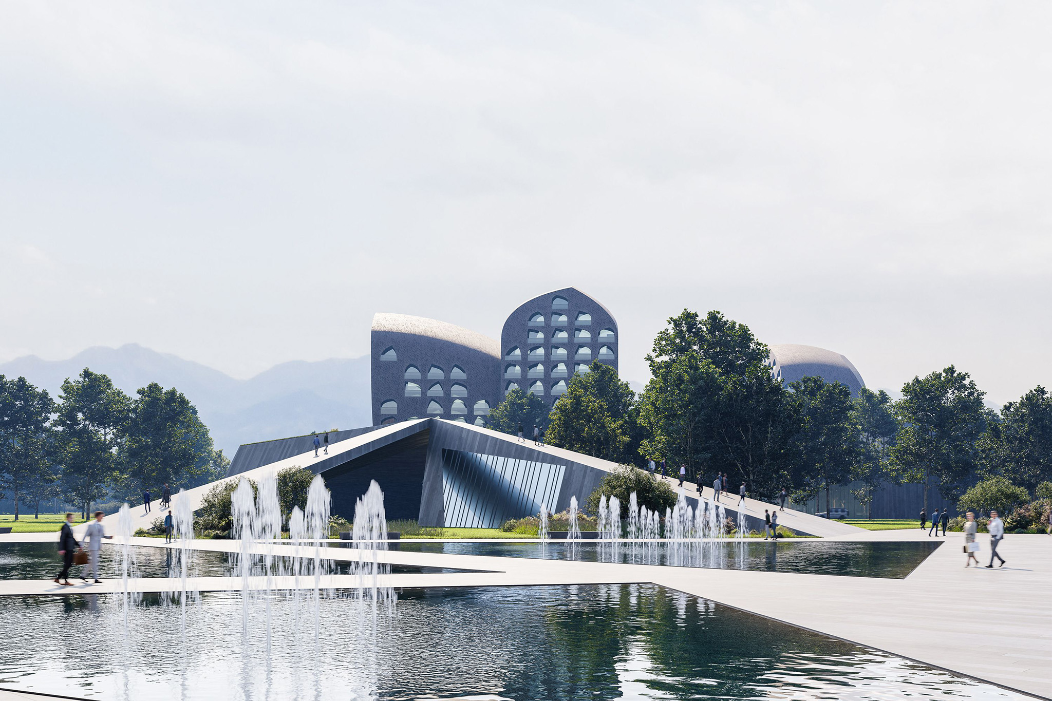 The jury awarded a commendation to Studio Farris Architects (Belgium) for proposing "a climate-responsive masterplan structured around ecological axes connected to the city’s existing green infrastructure. Linear parks, plazas, and hydrological landscapes shape a compact, walkable urban fabric aligned with Almaty’s strategic priorities, offering a resilient landscape- and water-based framework for future development."