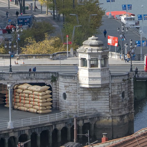 The performance by Martillo Neumático proposes two walls built of 233 inflatable bags that simulate the cargo bags of the freight ships that used to ply the city's estuary from the well-known Ripa dock. A commercial traffic that currently has moved out of the city to port areas.