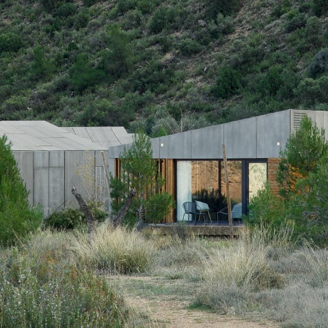 The modules are executed by means of a prefabricated wooden structure that optimizes the construction and that seems to float thanks to four recessed 'feet' of H.A. that isolate it from the ground. Externally, a neutral skin has been chosen, reminiscent of the large rocks on the slope, based on fibre cement panels that are reflected in the interior as a finish in the wet areas and furniture, leaving the pine wood flooring as a finish. of the main space and responsible for generating a pleasant atmosphere inside.