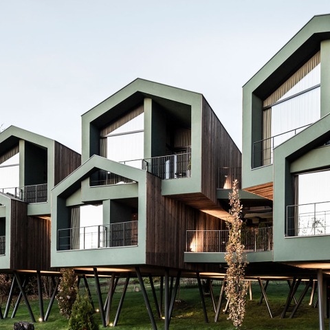 The coherent interior colour concept, the consistency of architectural touches such as the soffits of the suites clad in larch wood, and the discreet but deliberate irregularities of the tree houses enhance the quality of stay for guests at the Florian Hotel. The enthusiasm of the architects is palpable in every detail and will find its resonance in visitors, who despite of the new structure will be able to take full advantage of the park, which has been the guiding principle for this project from the very beginning.