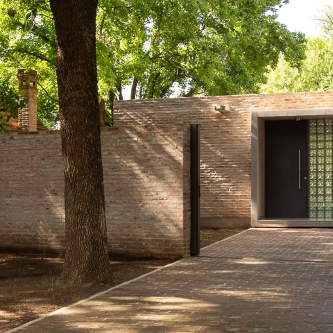 Once inside, an austere but generously sized brick patio prioritizes the entrance and acts as a filter with the street, ensuring privacy and security.