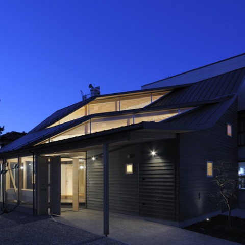 The site is situated under difficult metrological condition, such as large amount of rain throughout the year, high temperature and humidity in summer and very low temperature with heavy amount of snow in winter. Large roof provides a good shelter against heavy rain and snow. However it blocks sunlight, so it is usually very dark inside the house, especially in wintertime in Kanazawa, so people usually uses artificial lighting even during the day.