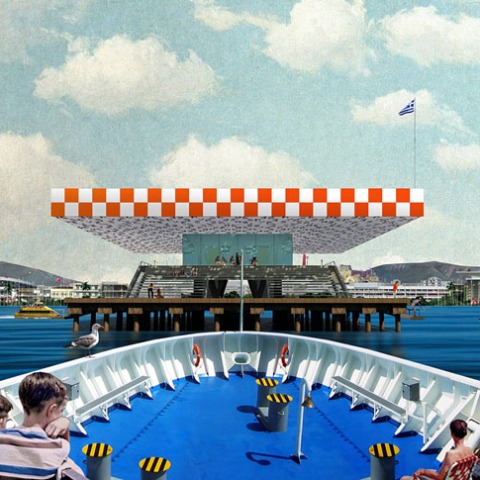 The size and quality of the Athens coastline in combination with the city's warm climate, constitute a higly valuable condition that is largely unexploited.The winning proposal uses the Faliro pier that is to be built in front of the new Stavros Niarchos Cultural Park, National Library and Opera complex, designed by Renzo Piano Building Workshop, to integrate sea-related activities into the daily city life; The square platform at the end of the pier extends onto a ferry-boat deck, while water-taxis operated by the New Athens Cultural Park stop on its two sides. The ferry-boat will host cultural and other events with sea-routes that reach as far as Cape Sounio. The water taxis, common practice in a lot of water-side cities, will carry travelers to various spots on the Athens coastline for a reasonable ticket price, extending the city’s mass transportation network into the water.