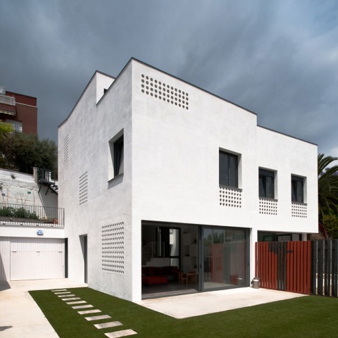 The formalization of the final volume is solved with a traditional cement finish painted in white, which gives the whole the character of the site. The project proposes two openings types; the traditional ones that gives a direct input light, and the second ones, which are made with ceramic lattices to filter the light and the solar radiation. These filters that were also painted in white, create a unified image throughout the volume and gives the building a tectonic appearance.