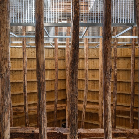 Inside, there is a ground floor for livestock, the first floor for living quarters and a lower deck for storing straw.