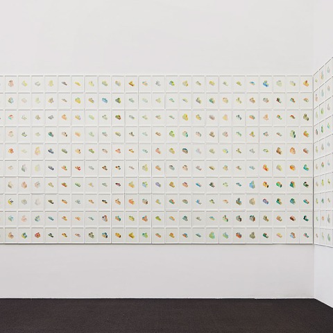 The chile-based studio, led and founded by Mauricio Pezo and Sofia von Ellrichshausen, underscores their embracement of art and architecture projects by organizing a monumental grid to display an obsessive iterative presentation of 729 framed watercolor studies on the wall, demonstrating an almost mathematical obsession.