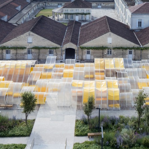 Inflatable seats installed in the structure, attached by straps, will allow visitors to sit, lean, or stretch out in the context of workshops, concerts, presentations, conferences, markets, games, moments of relaxation, wanderings, etc. From summer 2017, visitors will be able to enjoy creation and performance-based experiences with invited designers including Atelier W110 and 71bis, and artistic partners such as the Abbaye aux Dames.