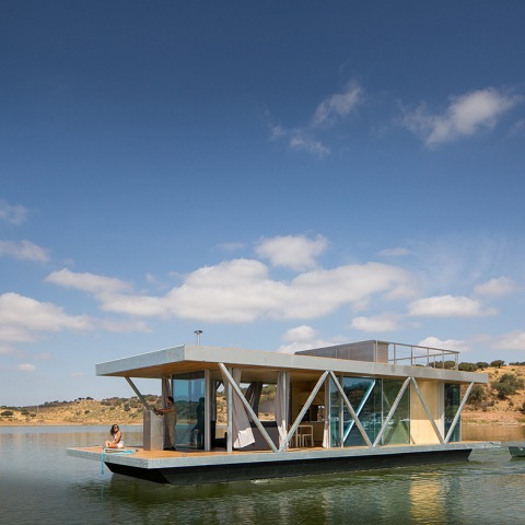This proposal for a floating house presented by Friday has all the characteristics of a typical house. Its design as a modular system lets to create multiple configurations, a space from 60 to 108 sqm, in order to be adapted to the different needs of users. The design reduces energy needs and allows a 7 days autonomy by using solar battery panels. The water that is stored is only for food preparation and personal hygiene, while for the rest of needs it is taken from the watercourse where the house is located.