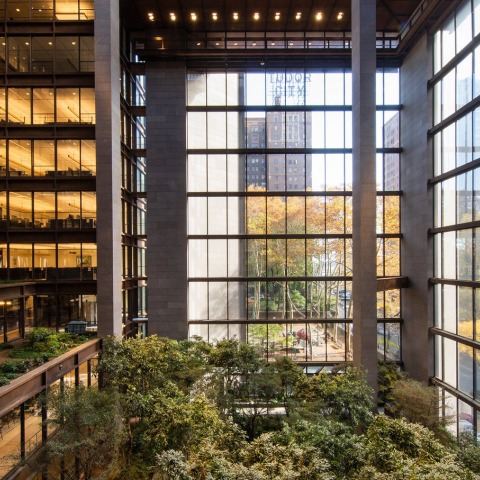 Completed in 1968 by Kevin Roche John Dinkeloo and Associates, the foundation’s global headquarters — one of New York City’s youngest landmarks — was a deliberate and nuanced response to the organization’s founding mission: to support education and charitable purposes for the advancement of human welfare. Gensler’s updated design features increased accessibility, open plan workplaces, expanded convening spaces, improved technical systems, complete restoration and planting of the sprawling indoor garden, and a forthcoming art gallery (opening March 2019). These key changes speak to Gensler’s belief that human experience is a key component in developing a healthy and connected workplace in today’s rapidly changing world.