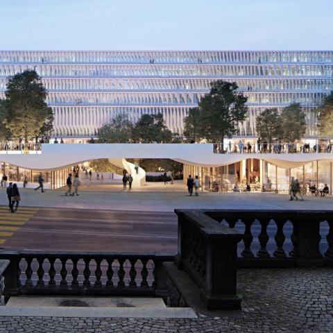 Only by placing many of the uses in an elevated building have we been able to bring daylight into the terraced plinth and make room for the public space that we were aiming for. The inviting atmosphere and the numerous trees will make the large plaza in front of the new building and also the Forum itself a new focal point of university and urban life."